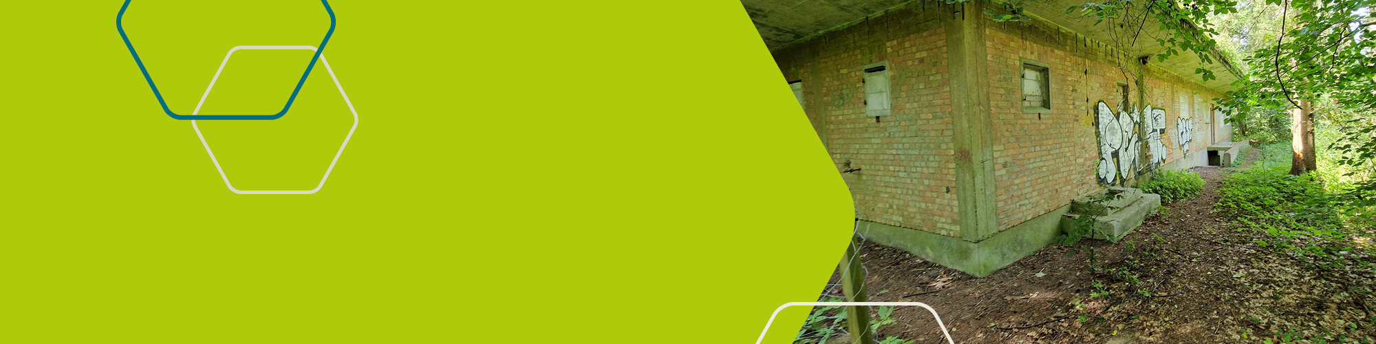 Abb. 3 und 4: Eines der Gebäude auf dem Gelände | So idyllisch sieht der ehemalige Rüstungsstandort aus